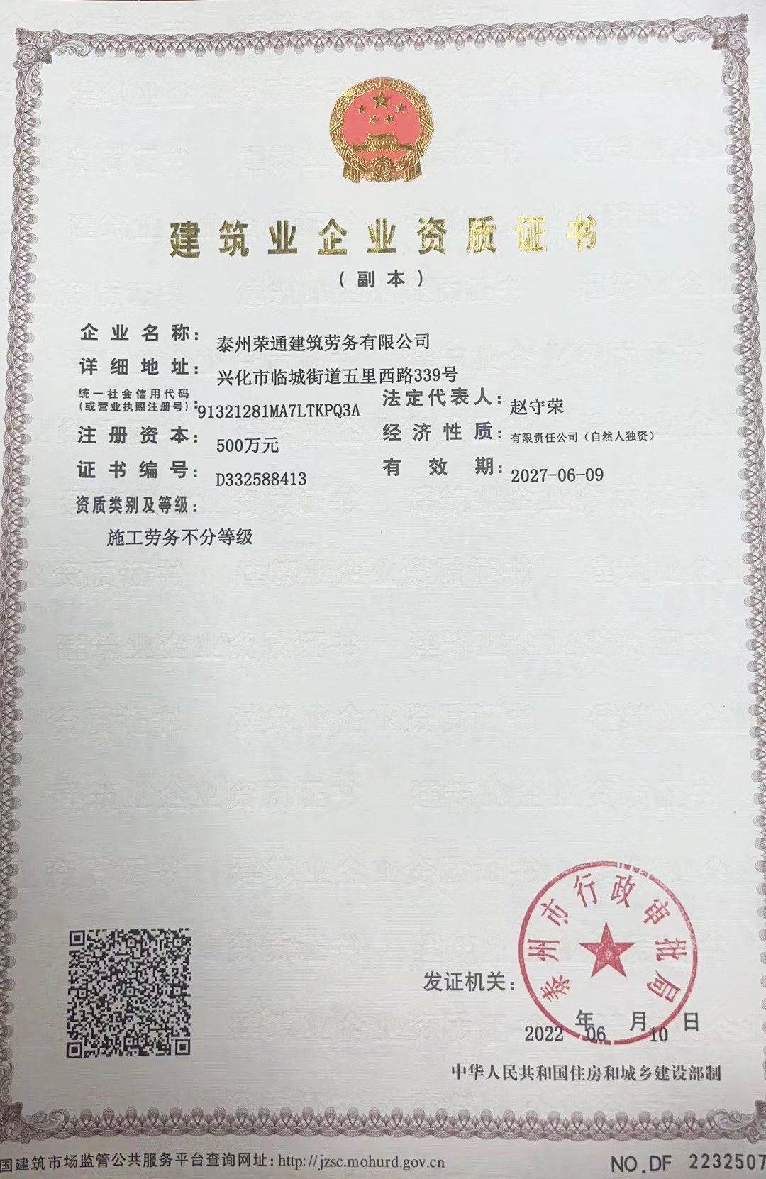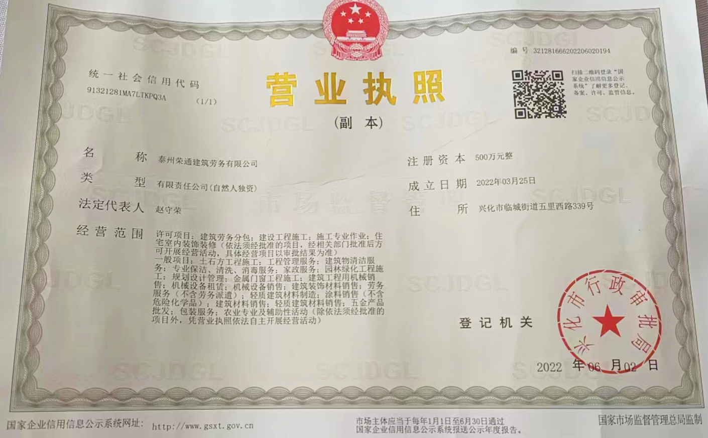 - 公司主要經(jīng)營(yíng)項(xiàng)目:土石方工程施工、工程管理服務(wù)、建筑物清潔服務(wù)、園林綠化工程施工、金屬門(mén)窗工程施工、勞務(wù)派遣等。