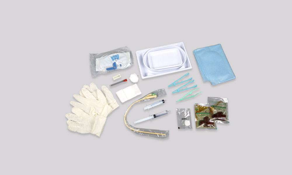 [結(jié)構(gòu)及組成] 產(chǎn)品由包布、洞巾、方巾、腰盤、器械盤、注水筒、鑷子、管夾、引流袋、導(dǎo)尿管、導(dǎo)尿管標(biāo)簽、橡膠檢查手套或滅菌橡膠外科手套、薄膜手套、試管、碘伏棉球、硅油棉球或硅油無紡布片、棉球、紗布塊組成。
