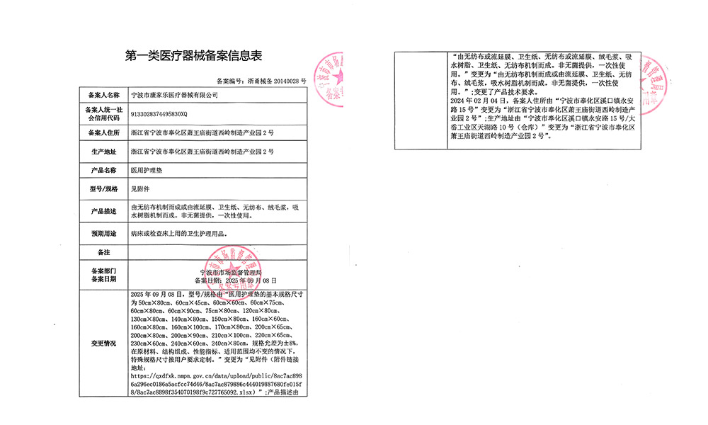 醫(yī)用護理墊:備案日期:2025年9月8日
