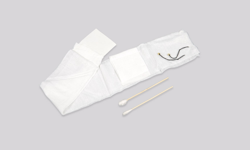 [結(jié)構(gòu)及組成] 產(chǎn)品由紗布塊、裹帶、粘合塊、棉簽、氣門芯或臍帶夾、開口紗布、棉紗線組成。